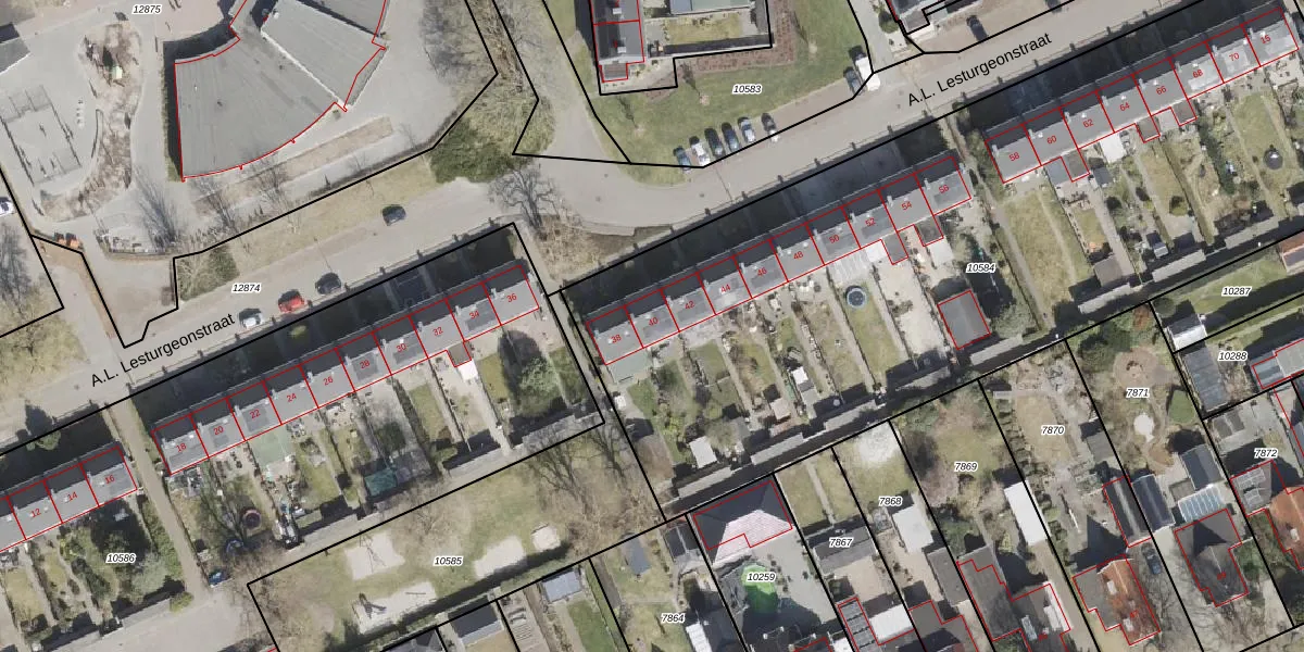 Het perceel waarop A.L. Lesturgeonstraat 40 staat heeft een oppervlakte van 4646 m². Dit is een zeer groot perceel. De perceeloppervlakte wordt geregistreerd door het Kadaster. Gedetailleerde informatie over de maten van dit perceel kunt u vinden in het rapport Kadastrale kaart met maatvoering van A.L. Lesturgeonstraat 40.