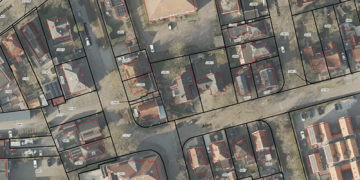 Het perceel waarop Allee 1 staat heeft een oppervlakte van 715 m². Dit is een groot perceel. De perceeloppervlakte wordt geregistreerd door het Kadaster. Gedetailleerde informatie over de maten van dit perceel kunt u vinden in het rapport Kadastrale kaart met maatvoering van Allee 1.