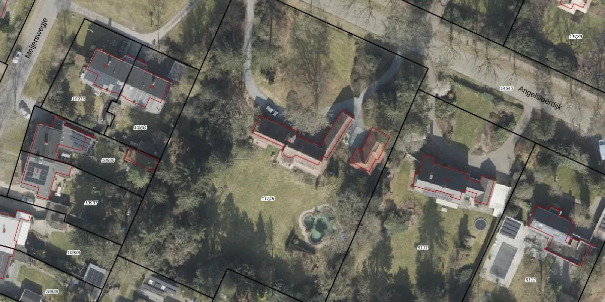 Het perceel waarop Angelsloërdijk 20 staat heeft een oppervlakte van 6419 m². Dit is een zeer groot perceel. De perceeloppervlakte wordt geregistreerd door het Kadaster. Gedetailleerde informatie over de maten van dit perceel kunt u vinden in het rapport Kadastrale kaart met maatvoering van Angelsloërdijk 20.