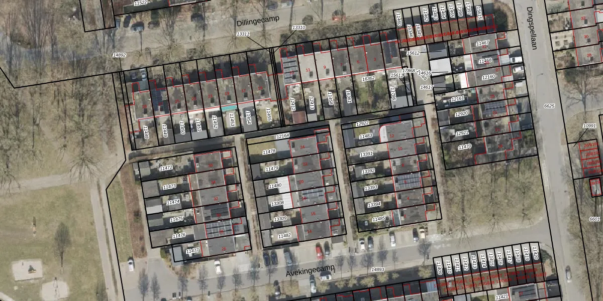 Gebruik de zoekbalk of klik op een perceel voor informatie over de adressen binnen dit perceel.