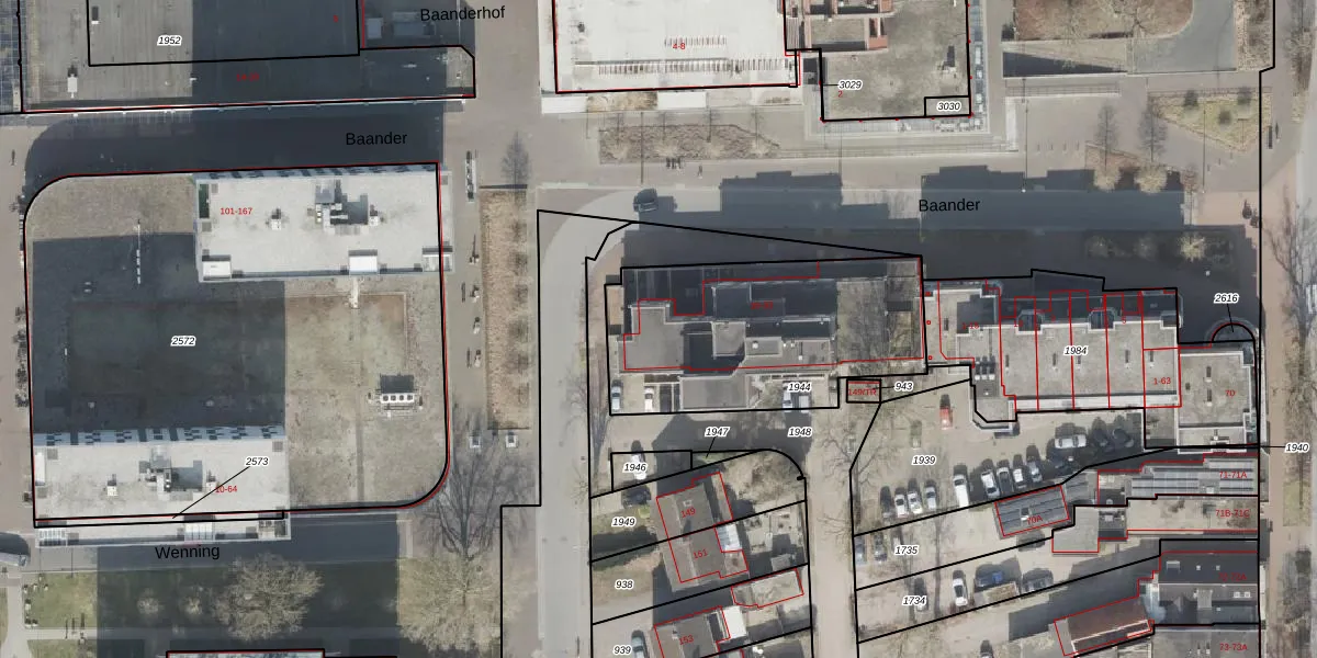 Het perceel waarop Baander 49 staat heeft een oppervlakte van 1008 m². Dit is een zeer groot perceel. De perceeloppervlakte wordt geregistreerd door het Kadaster. Gedetailleerde informatie over de maten van dit perceel kunt u vinden in het rapport Kadastrale kaart met maatvoering van Baander 49.