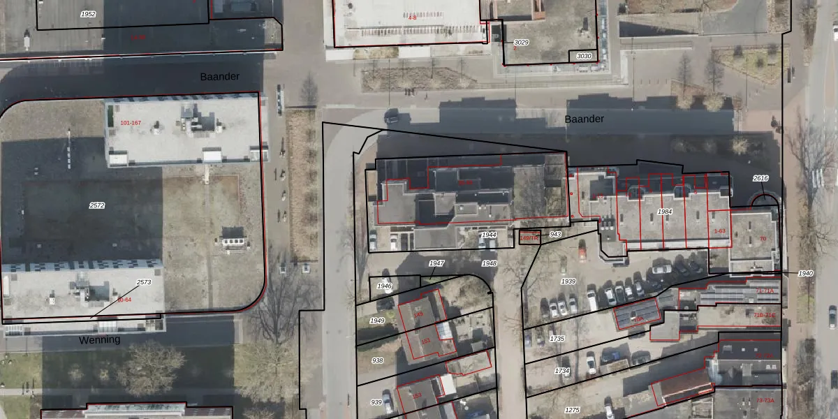 Het perceel waarop Baander 59 staat heeft een oppervlakte van 1008 m². Dit is een zeer groot perceel. De perceeloppervlakte wordt geregistreerd door het Kadaster. Gedetailleerde informatie over de maten van dit perceel kunt u vinden in het rapport Kadastrale kaart met maatvoering van Baander 59.