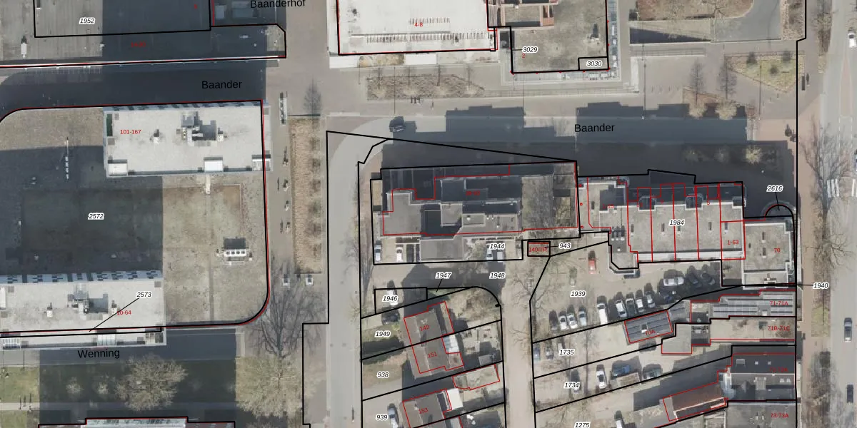 Het perceel waarop Baander 67 staat heeft een oppervlakte van 1008 m². Dit is een zeer groot perceel. De perceeloppervlakte wordt geregistreerd door het Kadaster. Gedetailleerde informatie over de maten van dit perceel kunt u vinden in het rapport Kadastrale kaart met maatvoering van Baander 67.