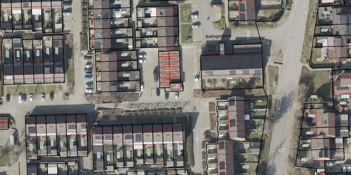 Gebruik de zoekbalk of klik op een perceel voor informatie over de adressen binnen dit perceel.