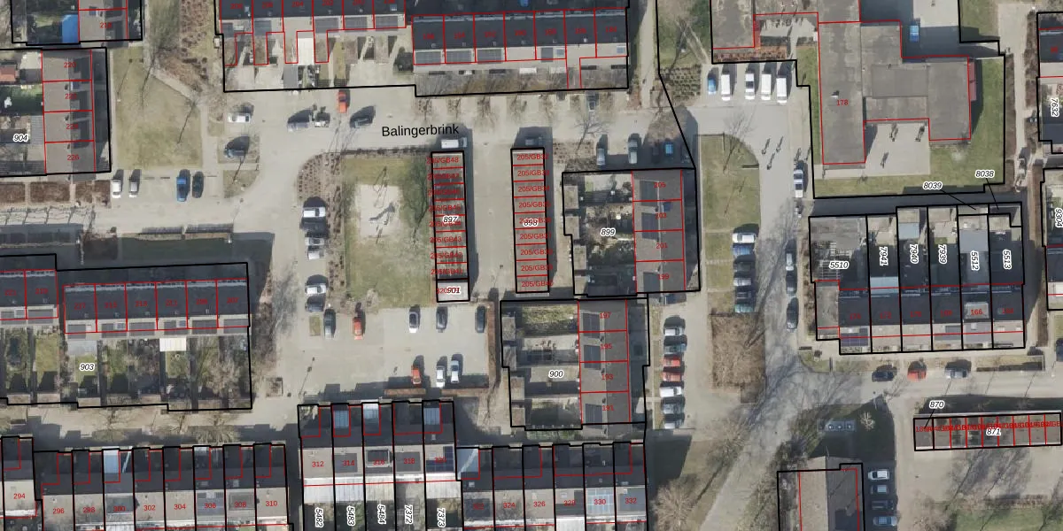 Balingerbrink 205-GB39 is gelegen op kadastraal perceel EMN00W898. Deze kadastrale aanduiding is uniek en wordt gebruikt door het Kadaster om eigendomsrechten en andere zakelijke rechten vast te leggen. Het perceel maakt onderdeel uit van de kadastrale gemeente Emmen.