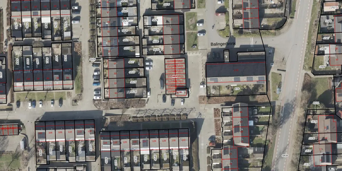 Balingerbrink 21-GB02 is gelegen op kadastraal perceel EMN00W883. Deze kadastrale aanduiding is uniek en wordt gebruikt door het Kadaster om eigendomsrechten en andere zakelijke rechten vast te leggen. Het perceel maakt onderdeel uit van de kadastrale gemeente Emmen.