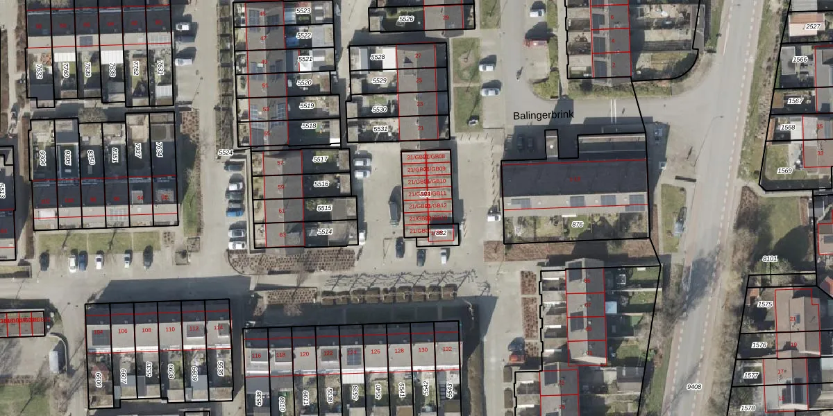 Balingerbrink 21-GB03 is gelegen op kadastraal perceel EMN00W883. Deze kadastrale aanduiding is uniek en wordt gebruikt door het Kadaster om eigendomsrechten en andere zakelijke rechten vast te leggen. Het perceel maakt onderdeel uit van de kadastrale gemeente Emmen.