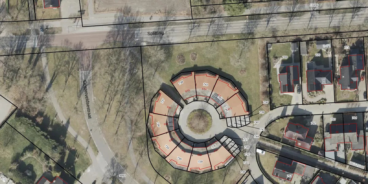 Gebruik de zoekbalk of klik op een perceel voor informatie over de adressen binnen dit perceel.