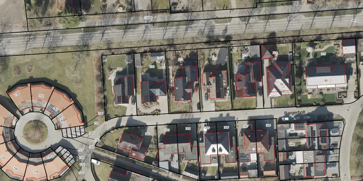 Het perceel waarop Bargerholt 73 staat heeft een oppervlakte van 608 m². Dit is een groot perceel. De perceeloppervlakte wordt geregistreerd door het Kadaster. Gedetailleerde informatie over de maten van dit perceel kunt u vinden in het rapport Kadastrale kaart met maatvoering van Bargerholt 73.