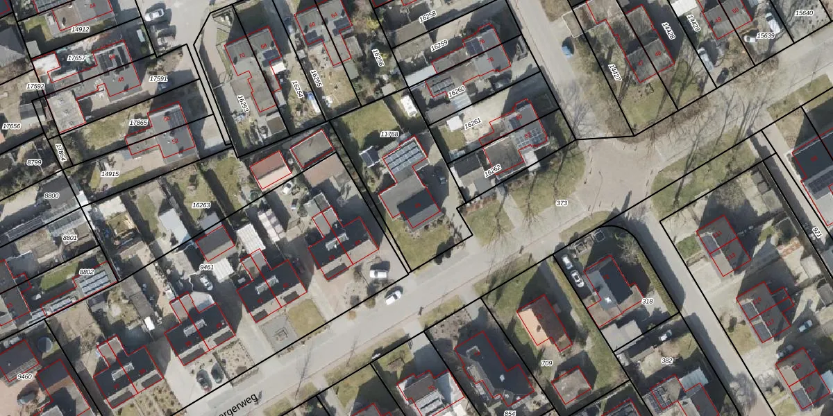 Gebruik de zoekbalk of klik op een perceel voor informatie over de adressen binnen dit perceel.