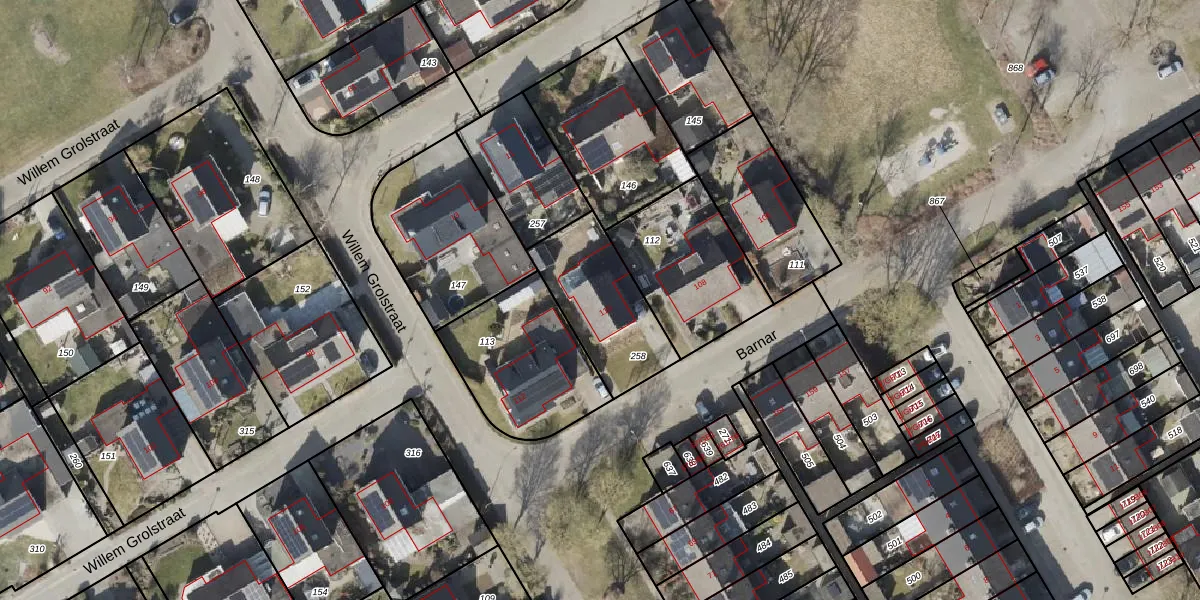 Gebruik de zoekbalk of klik op een perceel voor informatie over de adressen binnen dit perceel.