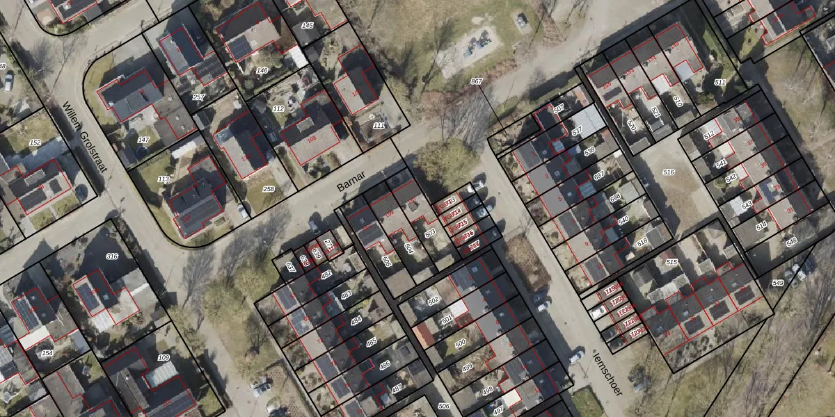 Gebruik de zoekbalk of klik op een perceel voor informatie over de adressen binnen dit perceel.