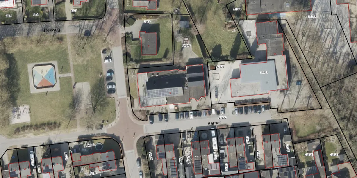 Het perceel waarop Barnar 5 staat heeft een oppervlakte van 1647 m². Dit is een zeer groot perceel. De perceeloppervlakte wordt geregistreerd door het Kadaster. Gedetailleerde informatie over de maten van dit perceel kunt u vinden in het rapport Kadastrale kaart met maatvoering van Barnar 5.