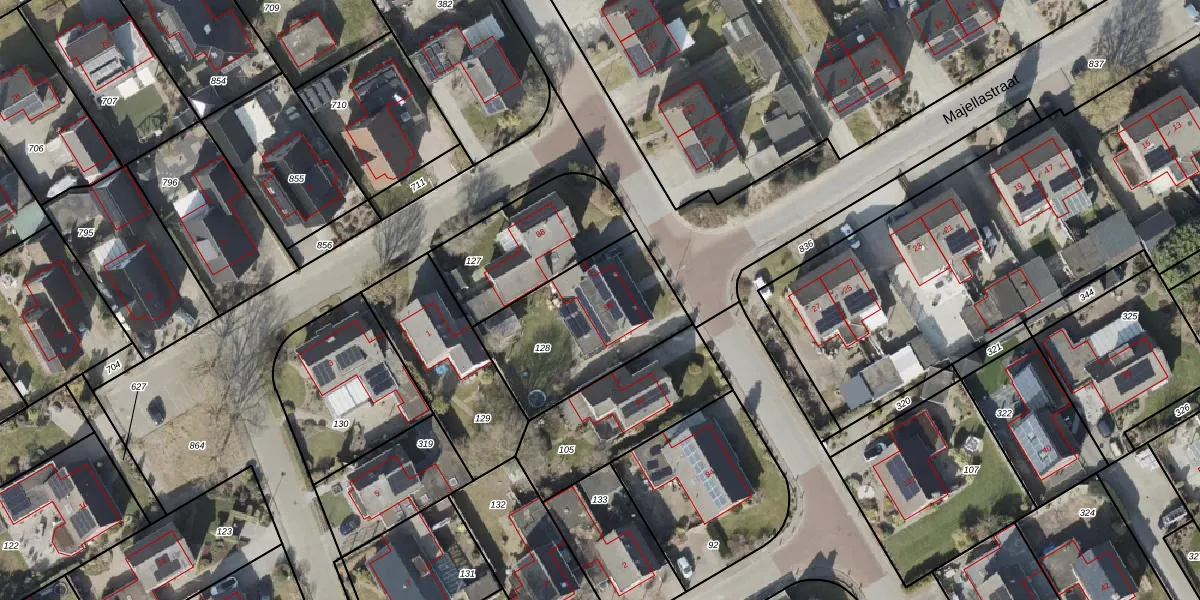 Gebruik de zoekbalk of klik op een perceel voor informatie over de adressen binnen dit perceel.