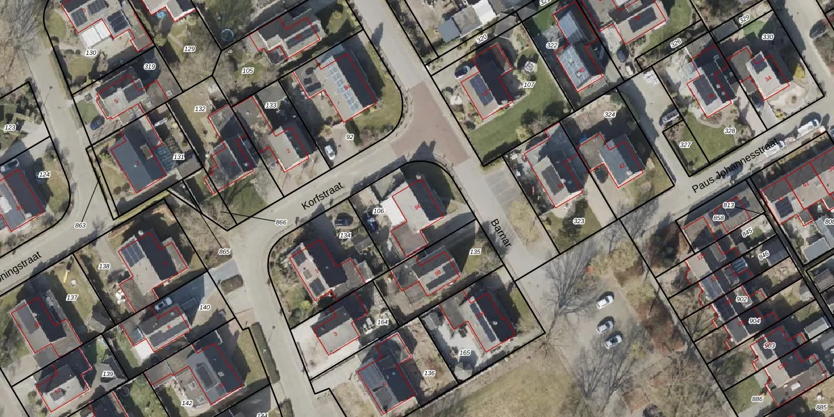 Gebruik de zoekbalk of klik op een perceel voor informatie over de adressen binnen dit perceel.