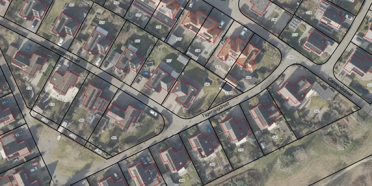 Het perceel waarop Barnsteendreef 13 staat heeft een oppervlakte van 639 m². Dit is een groot perceel. De perceeloppervlakte wordt geregistreerd door het Kadaster. Gedetailleerde informatie over de maten van dit perceel kunt u vinden in het rapport Kadastrale kaart met maatvoering van Barnsteendreef 13.
