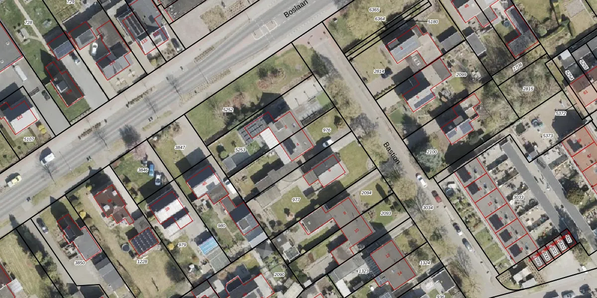 Gebruik de zoekbalk of klik op een perceel voor informatie over de adressen binnen dit perceel.