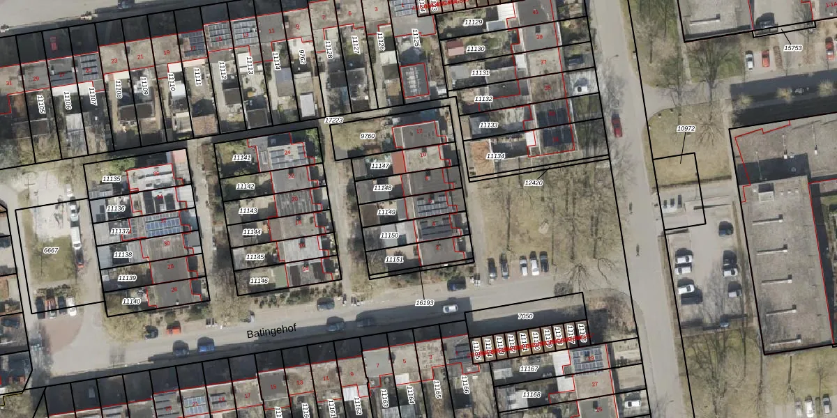 Het perceel waarop Batingehof 6 staat heeft een oppervlakte van 141 m². Dit is een middelgroot perceel. De perceeloppervlakte wordt geregistreerd door het Kadaster. Gedetailleerde informatie over de maten van dit perceel kunt u vinden in het rapport Kadastrale kaart met maatvoering van Batingehof 6.