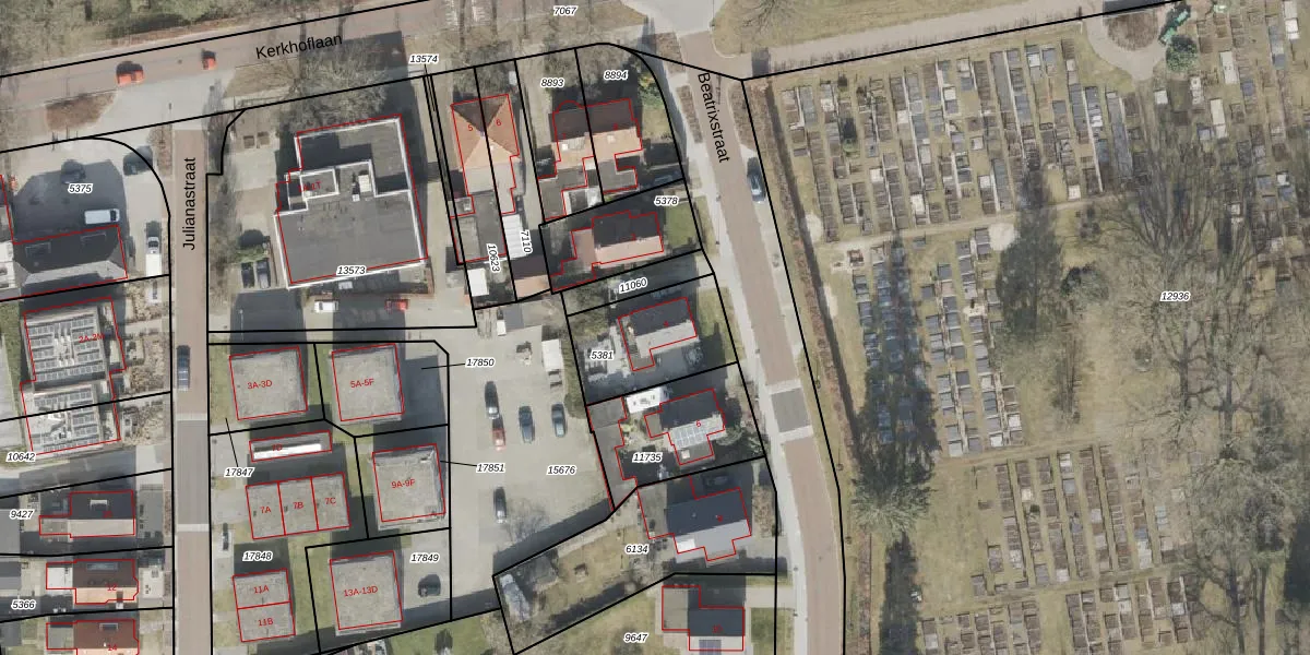 Gebruik de zoekbalk of klik op een perceel voor informatie over de adressen binnen dit perceel.