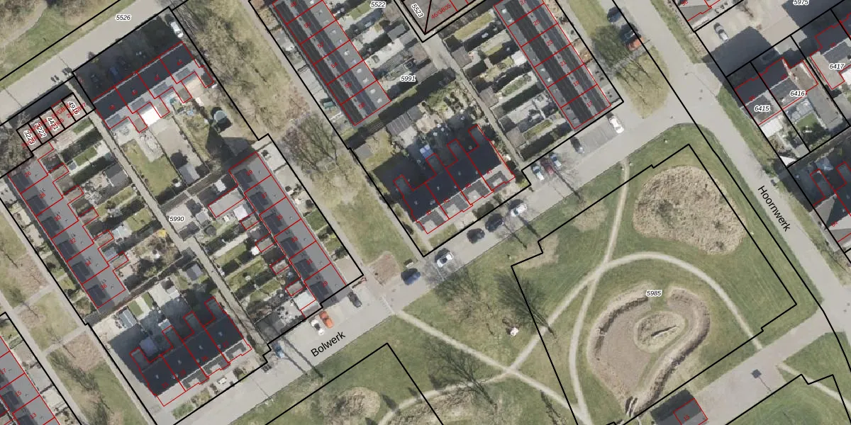 Het perceel waarop Bolwerk 41 staat heeft een oppervlakte van 3285 m². Dit is een zeer groot perceel. De perceeloppervlakte wordt geregistreerd door het Kadaster. Gedetailleerde informatie over de maten van dit perceel kunt u vinden in het rapport Kadastrale kaart met maatvoering van Bolwerk 41.