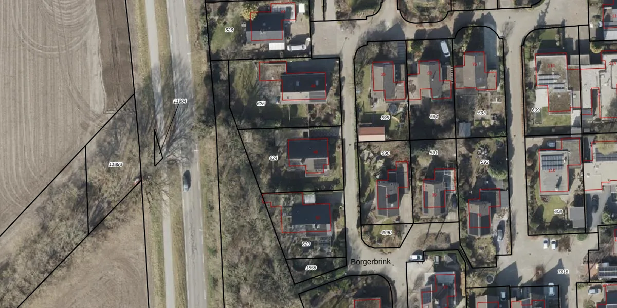 Het perceel waarop Borgerbrink 48 staat heeft een oppervlakte van 633 m². Dit is een groot perceel. De perceeloppervlakte wordt geregistreerd door het Kadaster. Gedetailleerde informatie over de maten van dit perceel kunt u vinden in het rapport Kadastrale kaart met maatvoering van Borgerbrink 48.