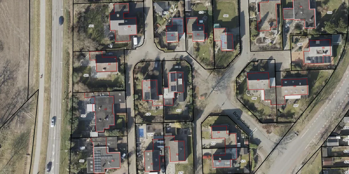 Het perceel waarop Borgerbrink 53 staat heeft een oppervlakte van 595 m². Dit is een groot perceel. De perceeloppervlakte wordt geregistreerd door het Kadaster. Gedetailleerde informatie over de maten van dit perceel kunt u vinden in het rapport Kadastrale kaart met maatvoering van Borgerbrink 53.
