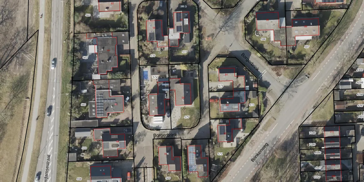 Gebruik de zoekbalk of klik op een perceel voor informatie over de adressen binnen dit perceel.