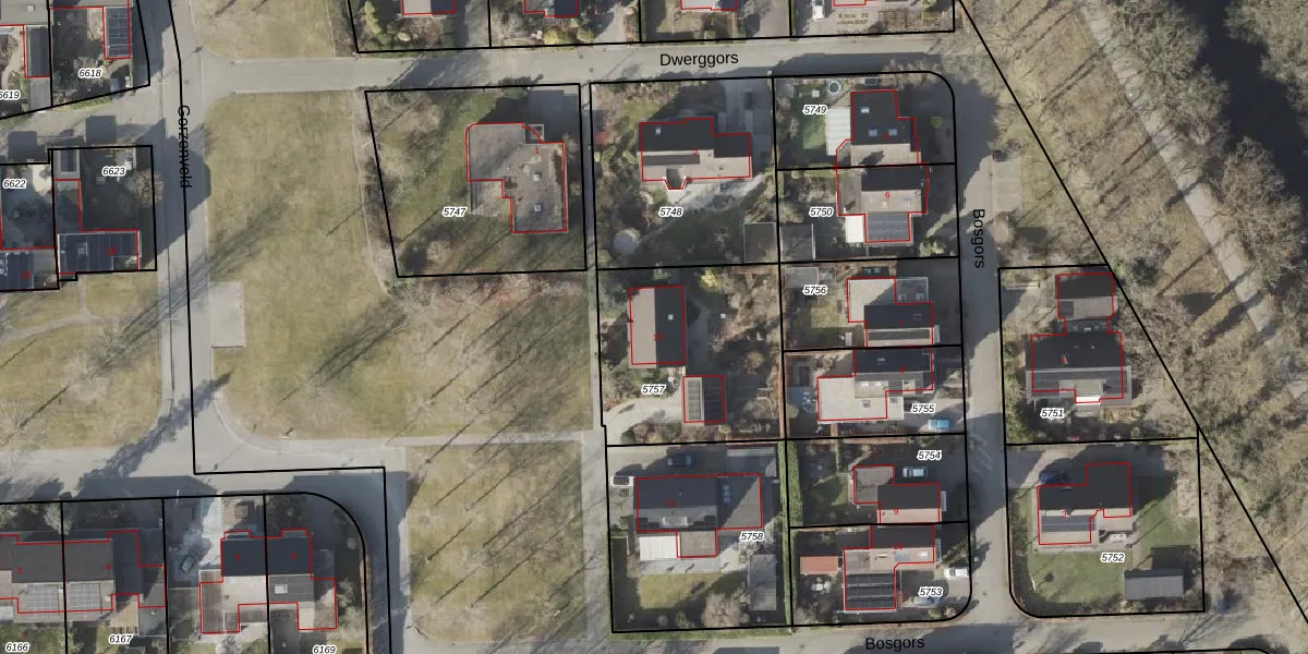 Het perceel waarop Bosgors 12 staat heeft een oppervlakte van 754 m². Dit is een groot perceel. De perceeloppervlakte wordt geregistreerd door het Kadaster. Gedetailleerde informatie over de maten van dit perceel kunt u vinden in het rapport Kadastrale kaart met maatvoering van Bosgors 12.