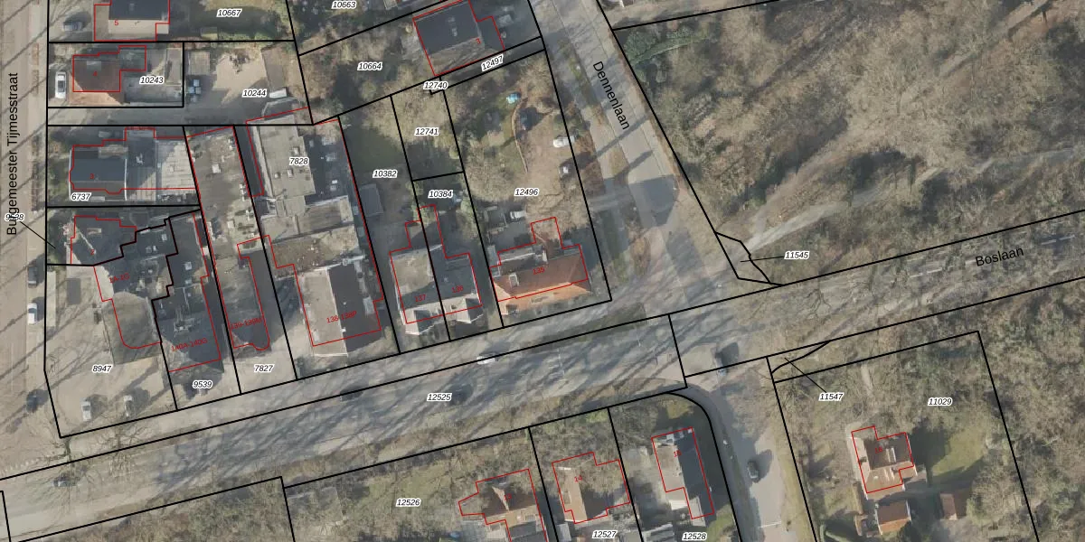 Boslaan 135 is gelegen op kadastraal perceel EMN00C12496. Deze kadastrale aanduiding is uniek en wordt gebruikt door het Kadaster om eigendomsrechten en andere zakelijke rechten vast te leggen. Het perceel maakt onderdeel uit van de kadastrale gemeente Emmen.
