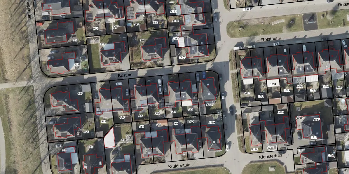 Het perceel waarop Bostuin 10 staat heeft een oppervlakte van 240 m². Dit is een middelgroot perceel. De perceeloppervlakte wordt geregistreerd door het Kadaster. Gedetailleerde informatie over de maten van dit perceel kunt u vinden in het rapport Kadastrale kaart met maatvoering van Bostuin 10.