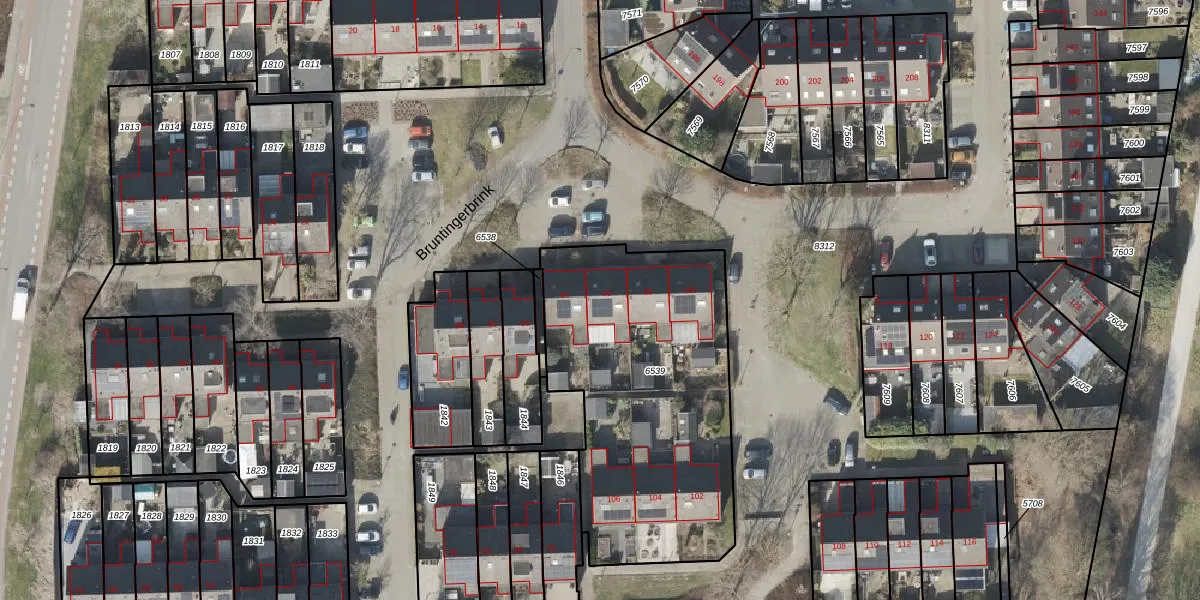 Het perceel waarop Bruntingerbrink 96 staat heeft een oppervlakte van 1441 m². Dit is een zeer groot perceel. De perceeloppervlakte wordt geregistreerd door het Kadaster. Gedetailleerde informatie over de maten van dit perceel kunt u vinden in het rapport Kadastrale kaart met maatvoering van Bruntingerbrink 96.