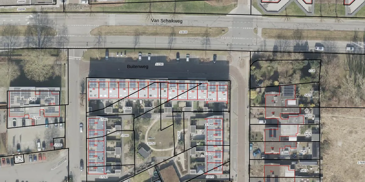 Het perceel waarop Buitenweg 48 staat heeft een oppervlakte van 140 m². Dit is een middelgroot perceel. De perceeloppervlakte wordt geregistreerd door het Kadaster. Gedetailleerde informatie over de maten van dit perceel kunt u vinden in het rapport Kadastrale kaart met maatvoering van Buitenweg 48.