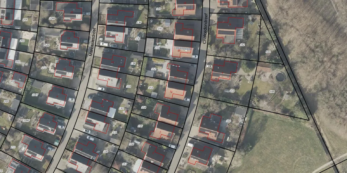 Het perceel waarop Chalcedondreef 11 staat heeft een oppervlakte van 376 m². Dit is een groot perceel. De perceeloppervlakte wordt geregistreerd door het Kadaster. Gedetailleerde informatie over de maten van dit perceel kunt u vinden in het rapport Kadastrale kaart met maatvoering van Chalcedondreef 11.