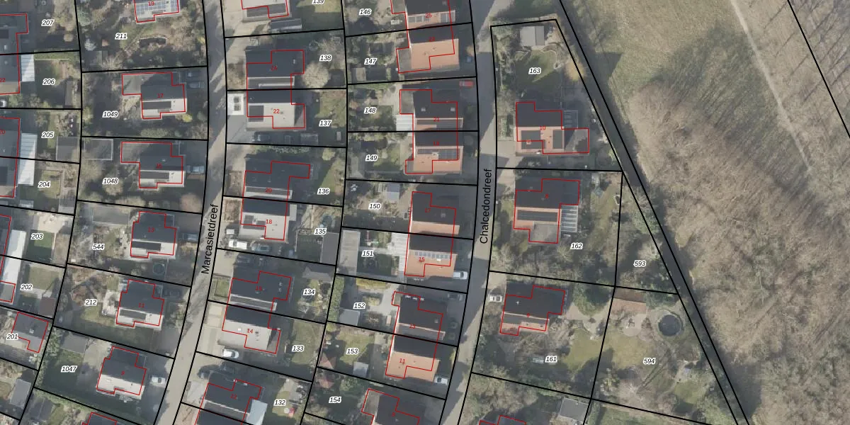 Gebruik de zoekbalk of klik op een perceel voor informatie over de adressen binnen dit perceel.