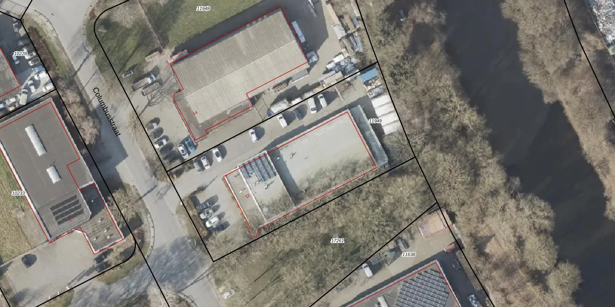 Het perceel waarop Columbusstraat 12 staat heeft een oppervlakte van 2500 m². Dit is een zeer groot perceel. De perceeloppervlakte wordt geregistreerd door het Kadaster. Gedetailleerde informatie over de maten van dit perceel kunt u vinden in het rapport Kadastrale kaart met maatvoering van Columbusstraat 12.