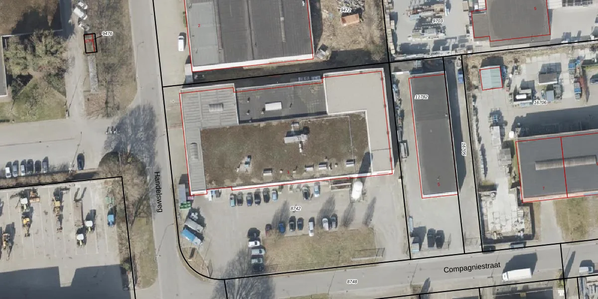 Het perceel waarop Compagniestraat 1 staat heeft een oppervlakte van 5056 m². Dit is een zeer groot perceel. De perceeloppervlakte wordt geregistreerd door het Kadaster. Gedetailleerde informatie over de maten van dit perceel kunt u vinden in het rapport Kadastrale kaart met maatvoering van Compagniestraat 1.