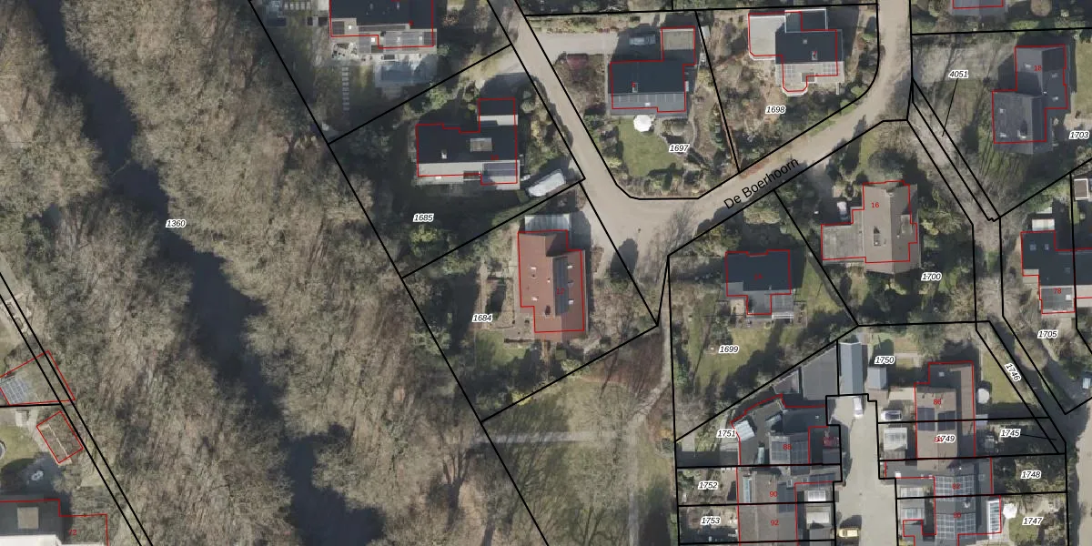 Het perceel waarop De Boerhoorn 12 staat heeft een oppervlakte van 1110 m². Dit is een zeer groot perceel. De perceeloppervlakte wordt geregistreerd door het Kadaster. Gedetailleerde informatie over de maten van dit perceel kunt u vinden in het rapport Kadastrale kaart met maatvoering van De Boerhoorn 12.
