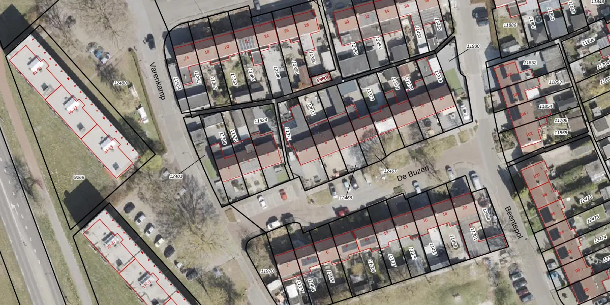 Gebruik de zoekbalk of klik op een perceel voor informatie over de adressen binnen dit perceel.