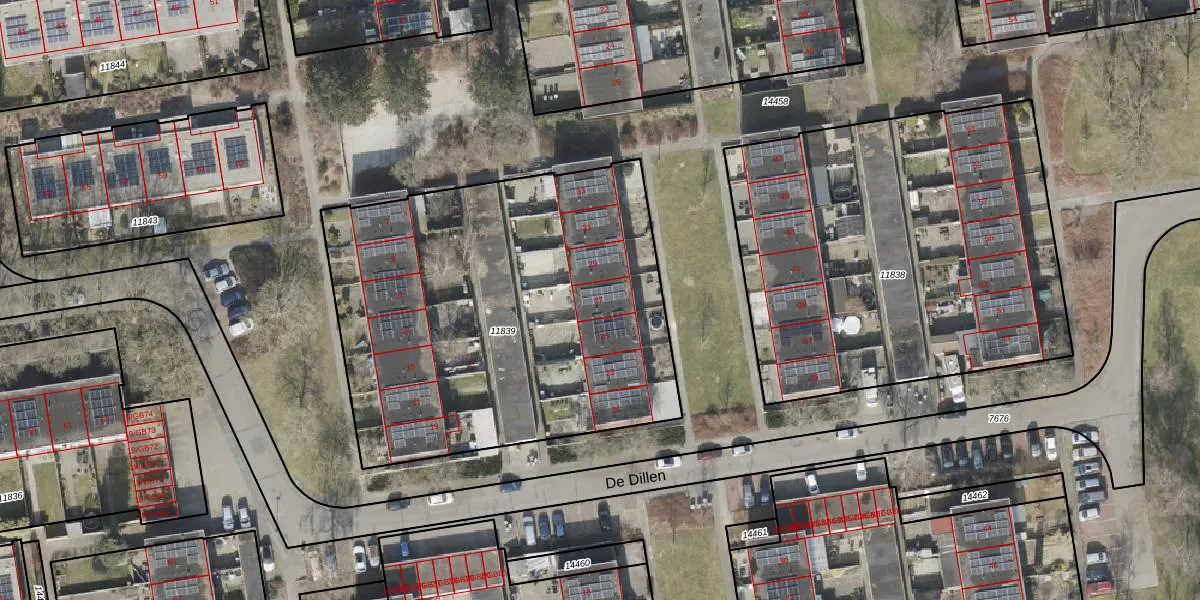 Het perceel waarop De Dillen 27 staat heeft een oppervlakte van 2347 m². Dit is een zeer groot perceel. De perceeloppervlakte wordt geregistreerd door het Kadaster. Gedetailleerde informatie over de maten van dit perceel kunt u vinden in het rapport Kadastrale kaart met maatvoering van De Dillen 27.
