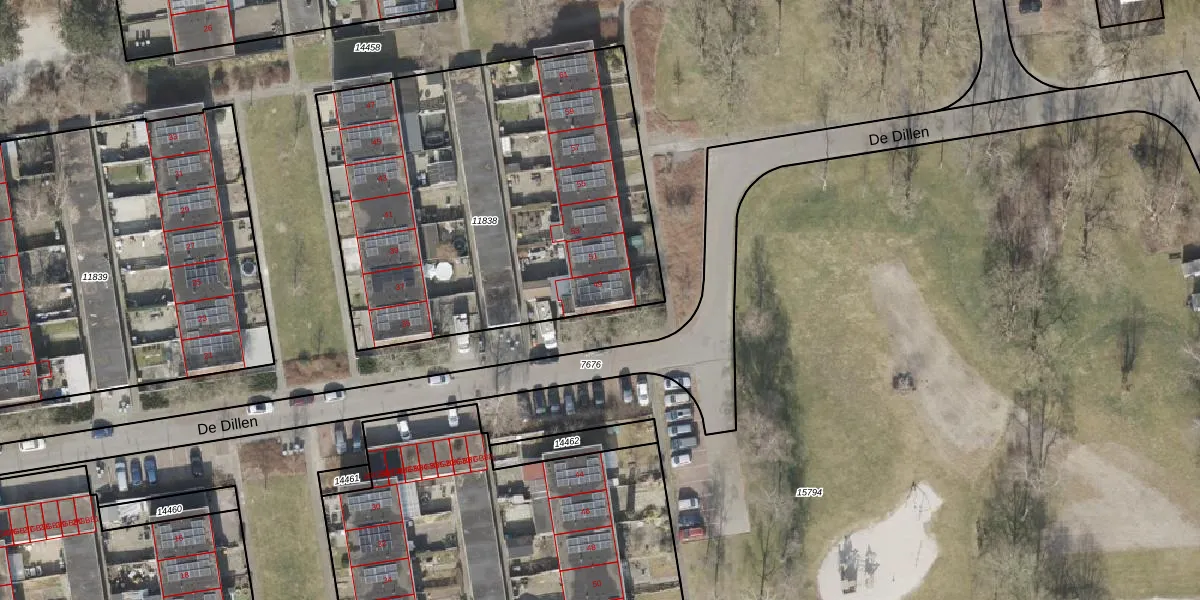 Het perceel waarop De Dillen 49 staat heeft een oppervlakte van 2259 m². Dit is een zeer groot perceel. De perceeloppervlakte wordt geregistreerd door het Kadaster. Gedetailleerde informatie over de maten van dit perceel kunt u vinden in het rapport Kadastrale kaart met maatvoering van De Dillen 49.