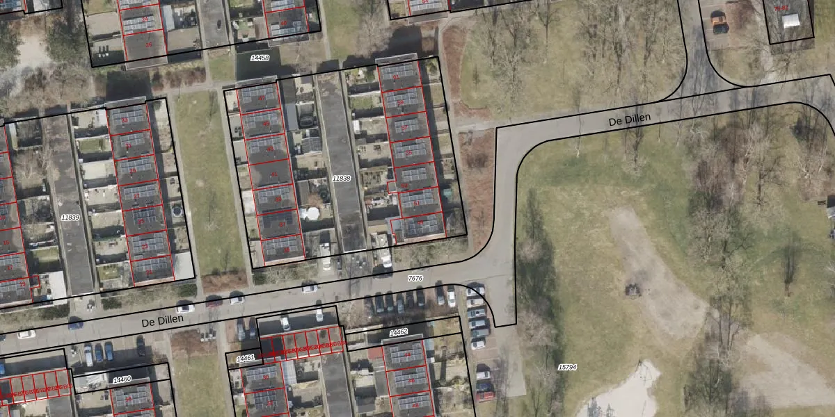 Het perceel waarop De Dillen 51 staat heeft een oppervlakte van 2259 m². Dit is een zeer groot perceel. De perceeloppervlakte wordt geregistreerd door het Kadaster. Gedetailleerde informatie over de maten van dit perceel kunt u vinden in het rapport Kadastrale kaart met maatvoering van De Dillen 51.