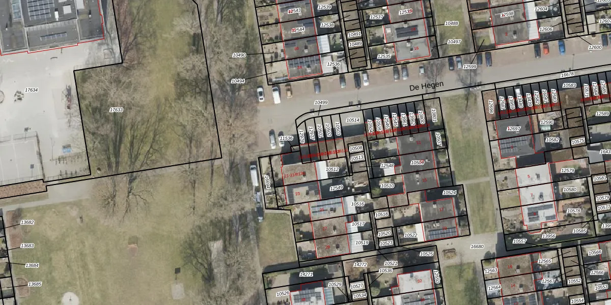 Gebruik de zoekbalk of klik op een perceel voor informatie over de adressen binnen dit perceel.