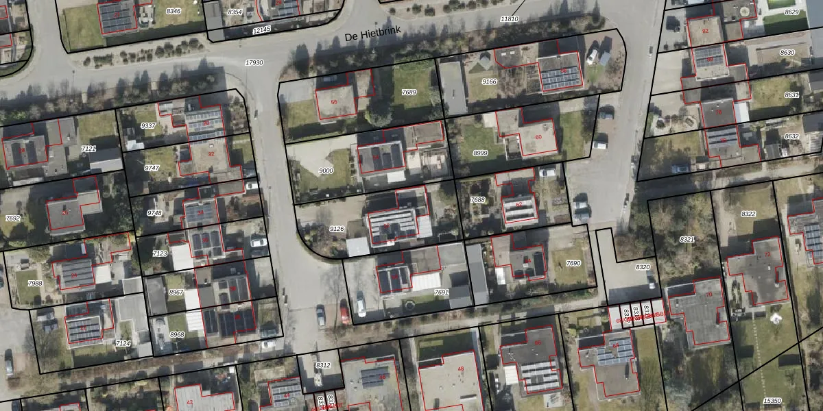 Het perceel waarop De Hietbrink 52 staat heeft een oppervlakte van 571 m². Dit is een groot perceel. De perceeloppervlakte wordt geregistreerd door het Kadaster. Gedetailleerde informatie over de maten van dit perceel kunt u vinden in het rapport Kadastrale kaart met maatvoering van De Hietbrink 52.