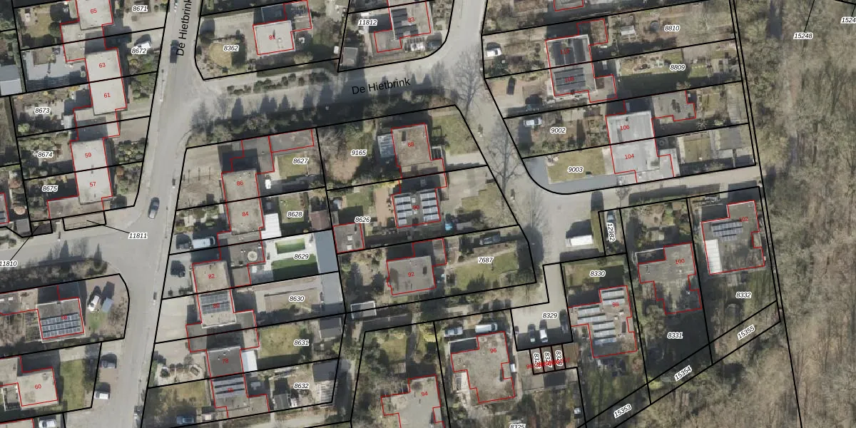 Het perceel waarop De Hietbrink 90 staat heeft een oppervlakte van 611 m². Dit is een groot perceel. De perceeloppervlakte wordt geregistreerd door het Kadaster. Gedetailleerde informatie over de maten van dit perceel kunt u vinden in het rapport Kadastrale kaart met maatvoering van De Hietbrink 90.