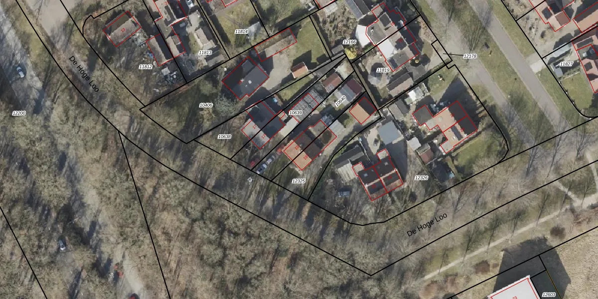 Het perceel waarop De Hoge Loo 19 staat heeft een oppervlakte van 340 m². Dit is een groot perceel. De perceeloppervlakte wordt geregistreerd door het Kadaster. Gedetailleerde informatie over de maten van dit perceel kunt u vinden in het rapport Kadastrale kaart met maatvoering van De Hoge Loo 19.