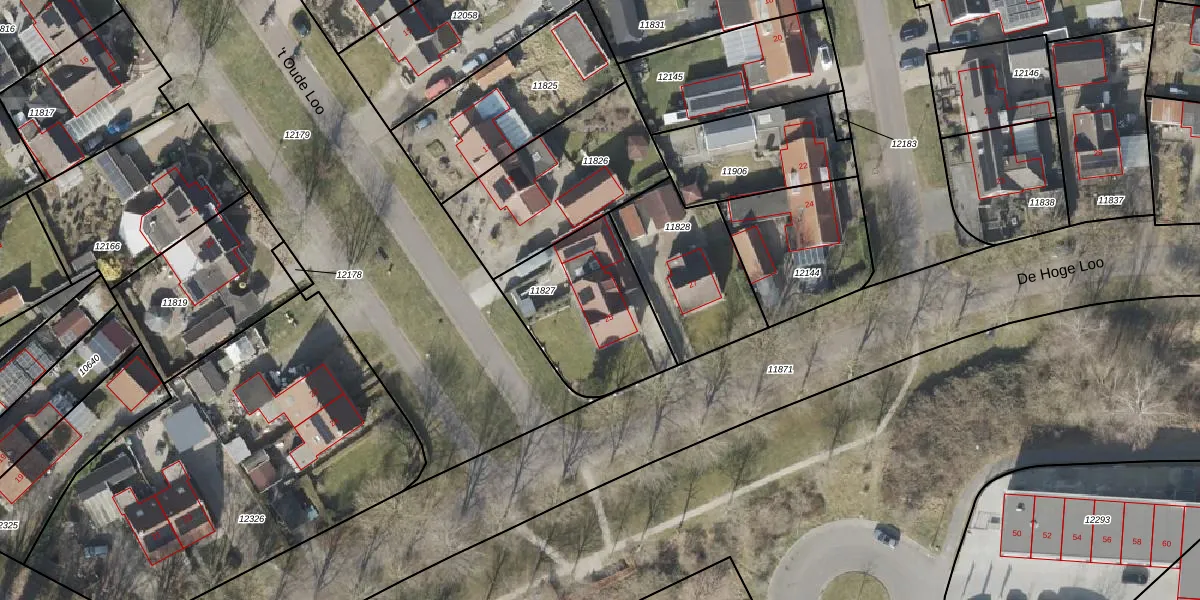 Het perceel waarop De Hoge Loo 25 staat heeft een oppervlakte van 521 m². Dit is een groot perceel. De perceeloppervlakte wordt geregistreerd door het Kadaster. Gedetailleerde informatie over de maten van dit perceel kunt u vinden in het rapport Kadastrale kaart met maatvoering van De Hoge Loo 25.