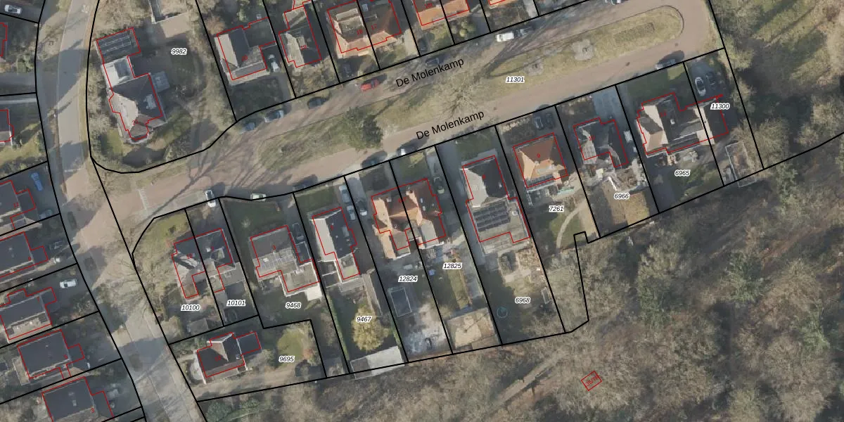 Het perceel waarop De Molenkamp 7 staat heeft een oppervlakte van 568 m². Dit is een groot perceel. De perceeloppervlakte wordt geregistreerd door het Kadaster. Gedetailleerde informatie over de maten van dit perceel kunt u vinden in het rapport Kadastrale kaart met maatvoering van De Molenkamp 7.