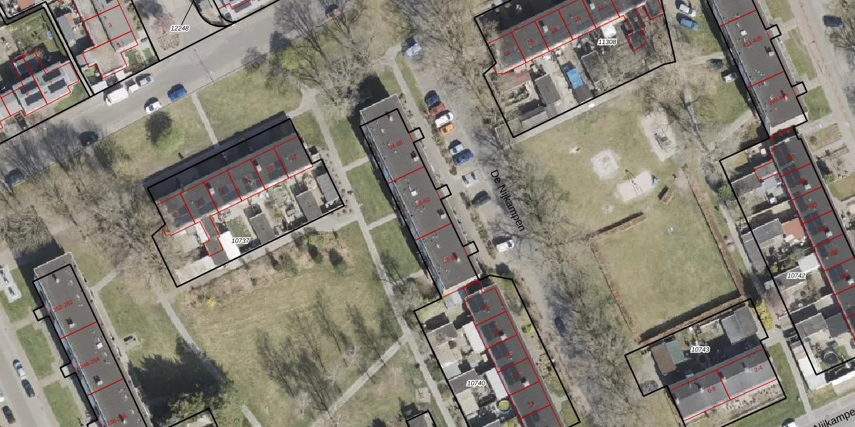 Het perceel waarop De Nijkampen 42 staat heeft een oppervlakte van 1447 m². Dit is een zeer groot perceel. De perceeloppervlakte wordt geregistreerd door het Kadaster. Gedetailleerde informatie over de maten van dit perceel kunt u vinden in het rapport Kadastrale kaart met maatvoering van De Nijkampen 42.