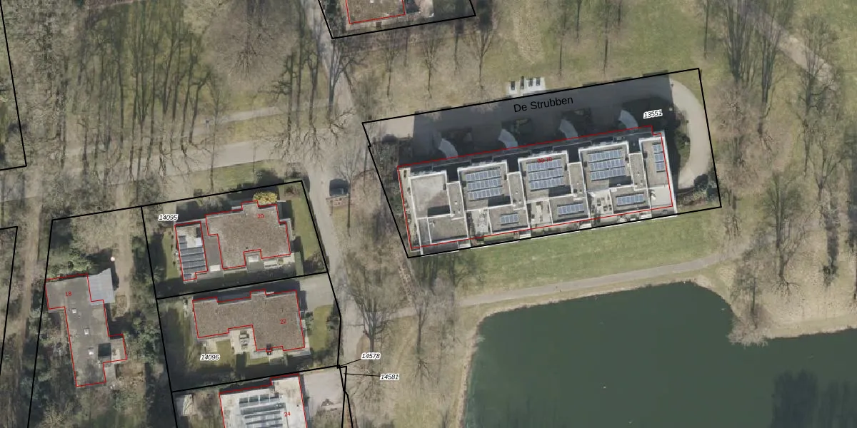 Het perceel waarop De Strubben 40 staat heeft een oppervlakte van 2522 m². Dit is een zeer groot perceel. De perceeloppervlakte wordt geregistreerd door het Kadaster. Gedetailleerde informatie over de maten van dit perceel kunt u vinden in het rapport Kadastrale kaart met maatvoering van De Strubben 40.