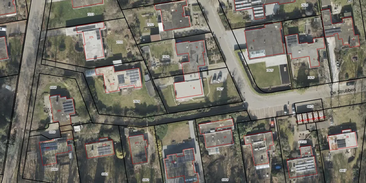 Gebruik de zoekbalk of klik op een perceel voor informatie over de adressen binnen dit perceel.